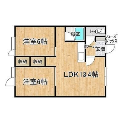2LDK(50.86m²)└ 2階:LDK13.4帖 洋室6帖 洋室6帖