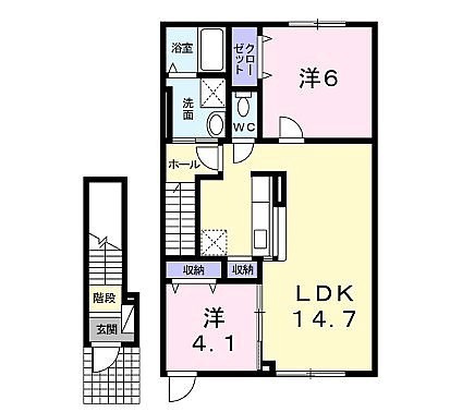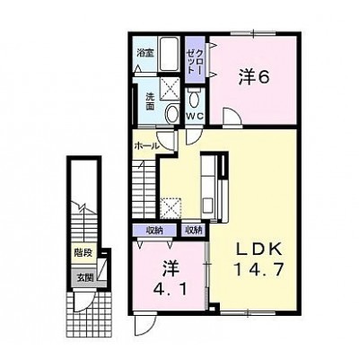 2LDK(58.45m²)└ 2階:LDK14.7帖 洋室6帖 洋室4.1帖