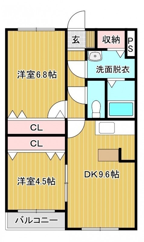 2DK(53.16m²)└ DK9.6帖 洋室6.8帖 洋室4.5帖
