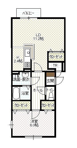 1LDK(48.98m²)└ LD11.2帖 K2.4帖 洋室6帖