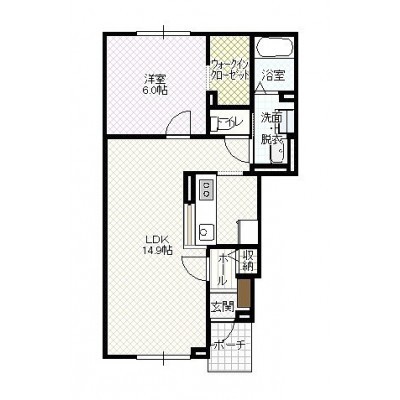1LDK(48.19m²)└ LD14.9帖 K 洋室6帖