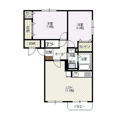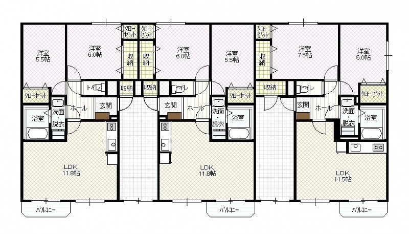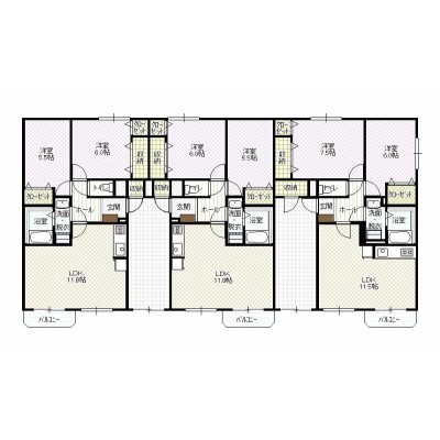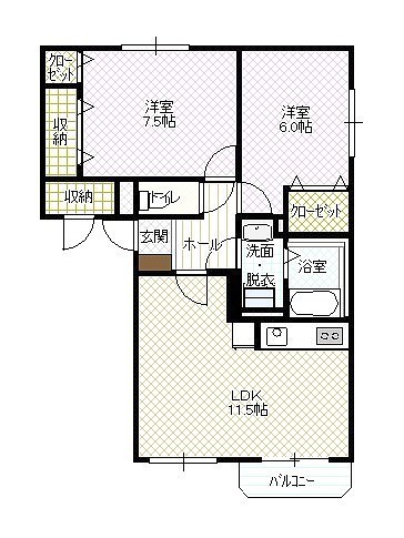 2LDK(57.35m²)└ LD11.5帖 K 洋室7.5帖 洋室6帖