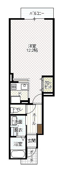 1K(32.9m²)└ 洋室12.2帖 K