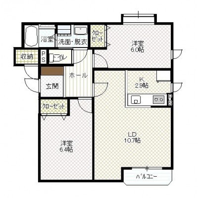 2LDK(59.13m²)└ LD10.7帖 K2.9帖 洋室6.4帖 洋室6帖