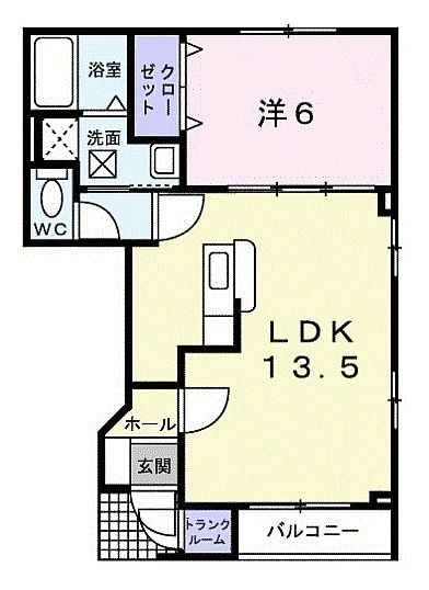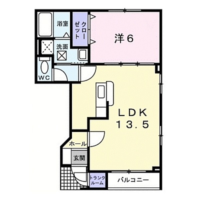 1LDK(45.14m²)└ LD13.5帖 K 洋室6帖