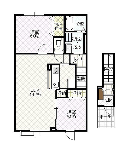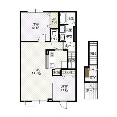 2LDK(58.45m²)└ LD14.7帖 K 洋室6帖 洋室4.1帖
