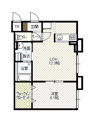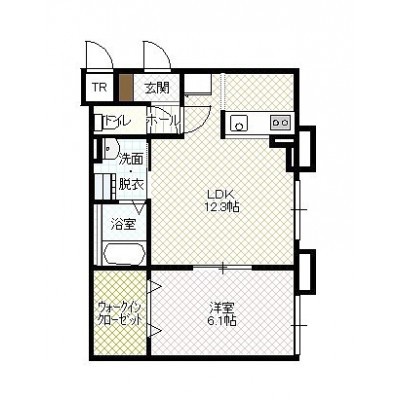 1LDK(43.82m²)└ LD12.3帖 K 洋室6.1帖
