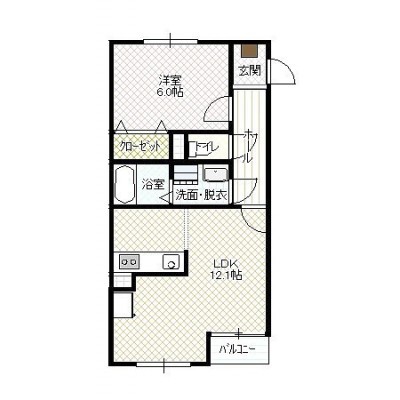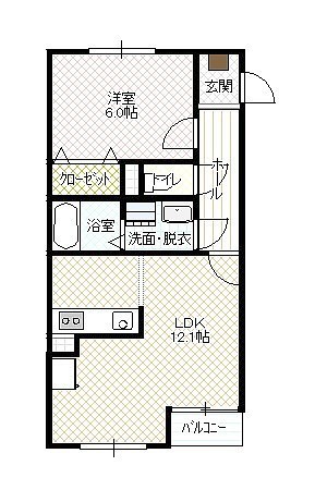 1LDK(43.35m²)└ LD12.1帖 K 洋室6帖