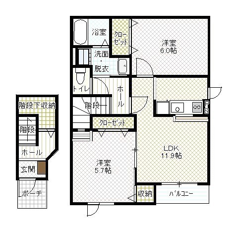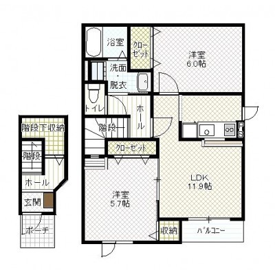 2LDK(62.54m²)└ LD11.9帖 K 洋室6帖 洋室5.7帖