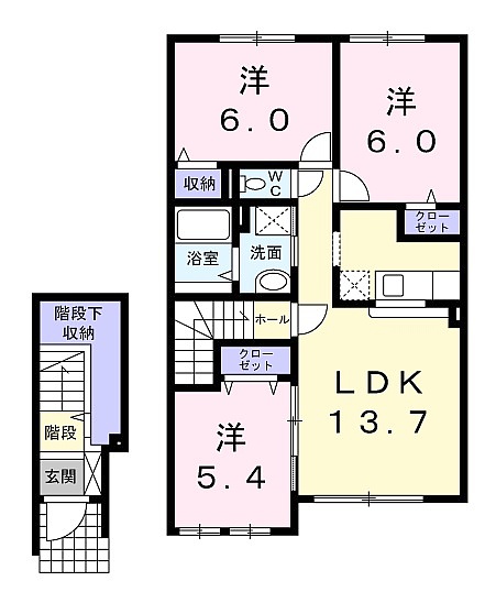 3LDK(72.42m²)└ LD13.7帖 K 洋室6帖 洋室6帖 洋室5.4帖