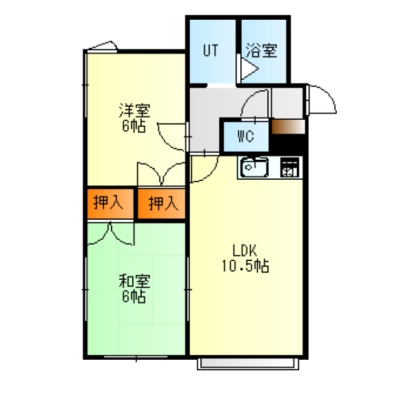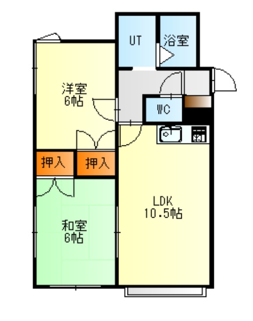 2DK(47.4m²)└ 1階:DK10.5帖 洋室6帖 和室6帖