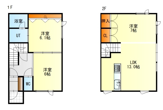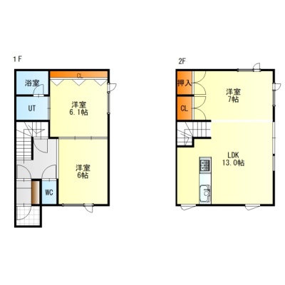 3LDK(67.23m²)└ 1階:LDK13帖 洋室6帖 洋室6帖