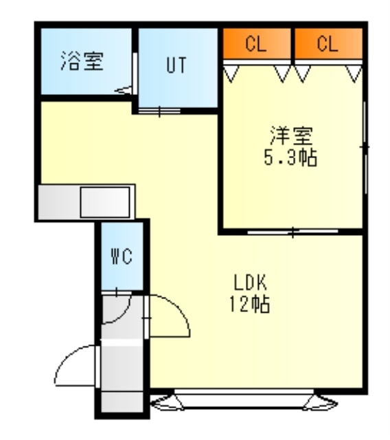 1LDK(42.18m²)└ 2階:LDK12.5帖 洋室5.2帖