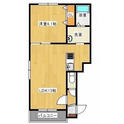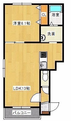 1LDK(42.85m²)└ LDK13帖 洋室6.1帖