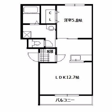1LDK(47.4m²)└ 2階:LDK12.7帖 洋室5.8帖