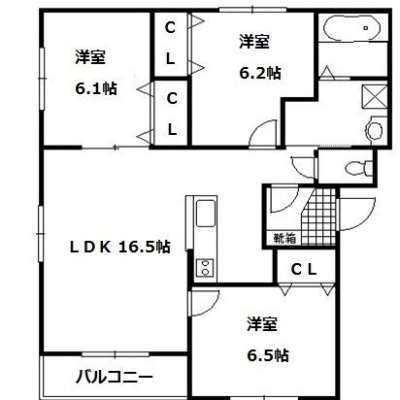 3LDK(78.63m²)└ LDK16.5帖 洋室6.5帖 洋室6.2帖 洋室6.1帖