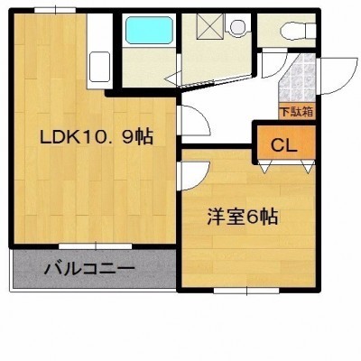 1LDK(40.74m²)└ LDK10.9帖 洋室6帖
