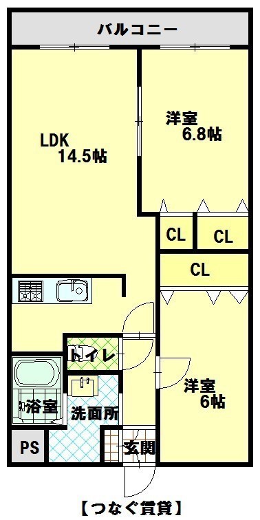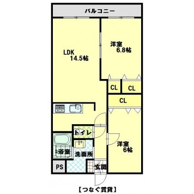 2LDK(60.33m²)└ LDK14.7帖 洋室6.8帖 洋室6帖