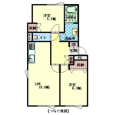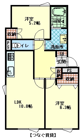 2LDK(51.9m²)└ LDK10.8帖 洋室6.3帖 洋室5.2帖