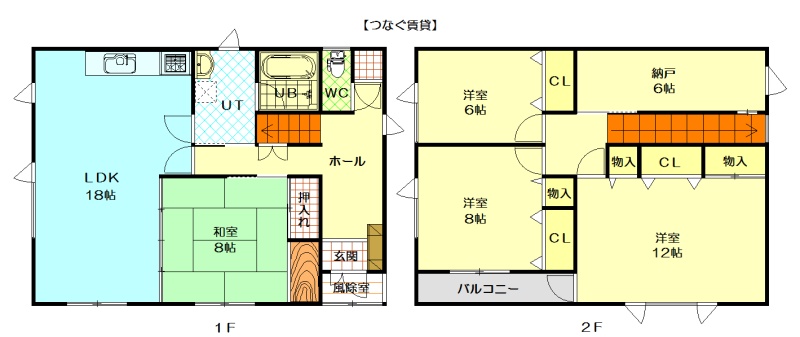 4SLDK(137.05m²)└ 1階:LDK18帖 和室8帖 / 2階:洋室6帖 洋室8帖 洋室12帖 S6帖