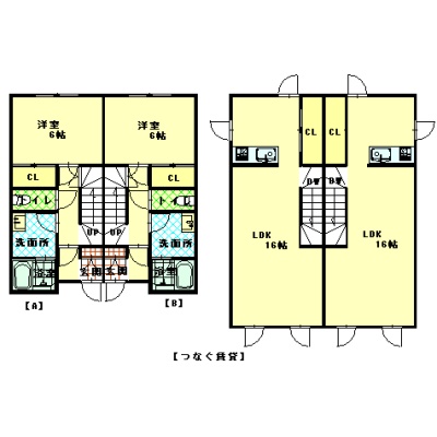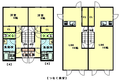 1LDK(60.22m²)└ 1階:洋室6.1帖 / 2階:LDK16帖