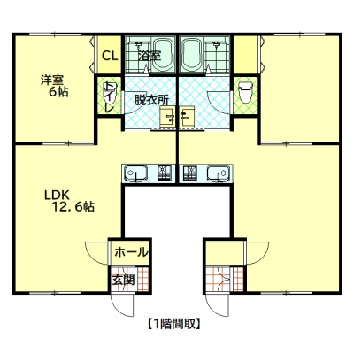 1LDK(41.42m²)└ LDK12.6帖 洋室6帖