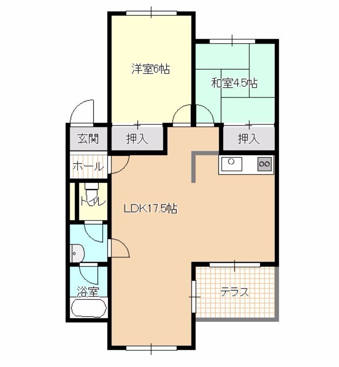 2LDK(58.26m²)└ 4階:LDK17帖 和室4.5帖 洋室6帖