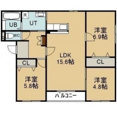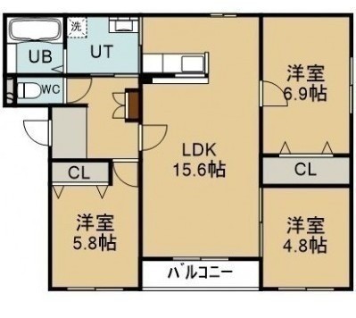 3LDK(74.89m²)└ LDK15.6帖 洋室5.7帖 洋室6帖 洋室5.8帖