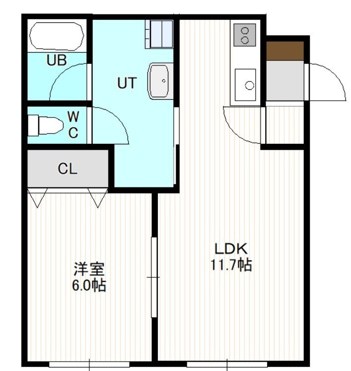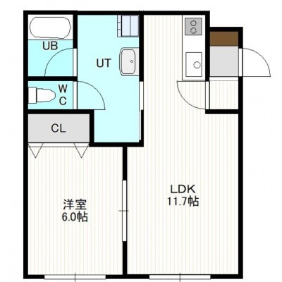 1LDK(43.38m²)└ 4階:LDK11.7帖 洋室6帖