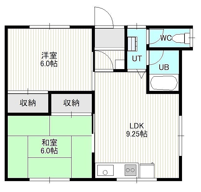 2LDK(45.7m²)└ 2階:LDK9.25帖 洋室6帖 和室6帖