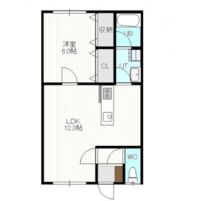 1LDK(42.81m²)└ 1階:LDK12.3帖 洋室6帖
