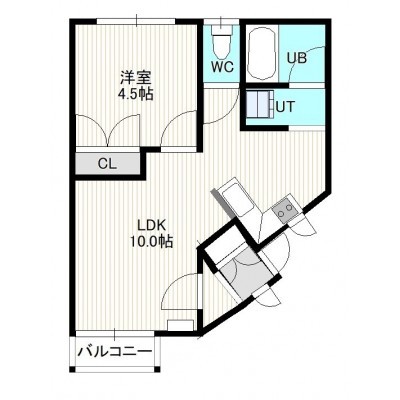 1LDK(32.68m²)└ 1階:LDK10帖 洋室4.5帖
