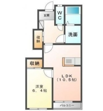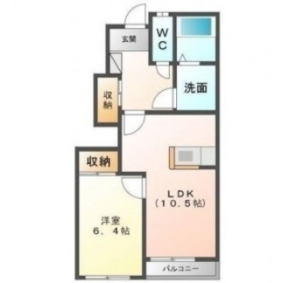1LDK(44.62m²)└ 1階:LDK10.5帖 洋室6.4帖