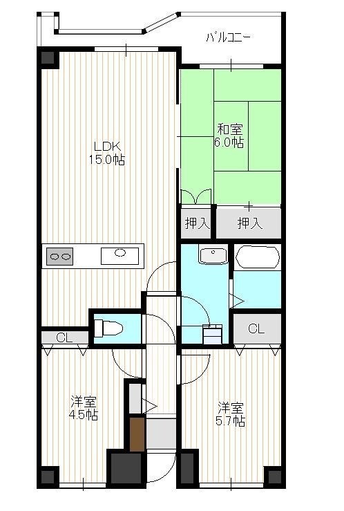 3LDK(70.37m²)└ 1階:LDK15帖 和室6帖 洋室5.7帖 洋室4.5帖