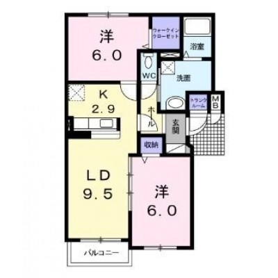2LDK(55.84m²)└ 1階:LDK12.4帖 洋室6帖 洋室6帖
