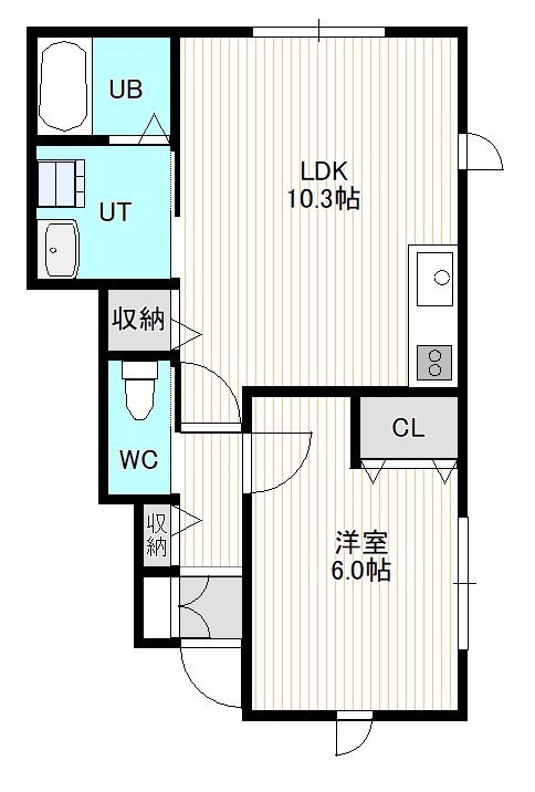 1LDK(41.51m²)└ 1階:LDK10.2帖 洋室6帖