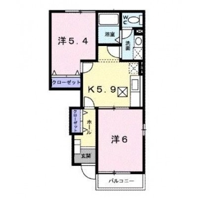 2DK(42.77m²)└ 1階:DK5.9帖 洋室6帖 洋室5.4帖
