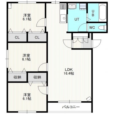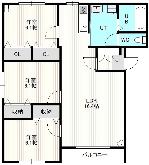 3LDK(75.13m²)└ 2階:LDK16.3帖 洋室6.1帖 洋室6.1帖 洋室6.1帖