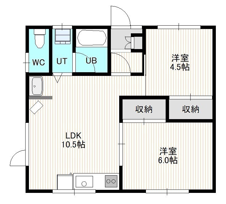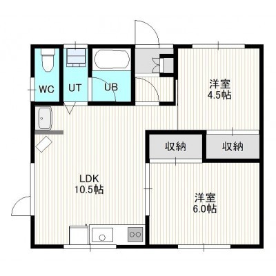 2LDK(46.2m²)└ 1階:LDK10.5帖 洋室6帖 洋室4.5帖