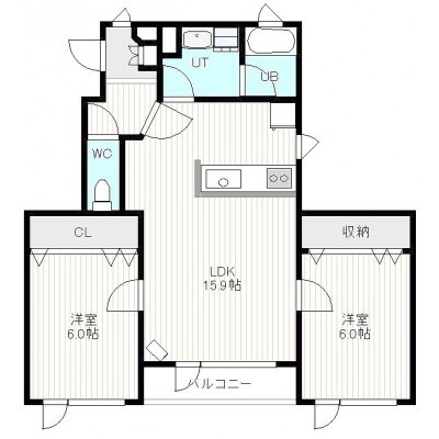 2LDK(55.37m²)└ 3階:LDK15.9帖 洋室6帖 洋室6帖