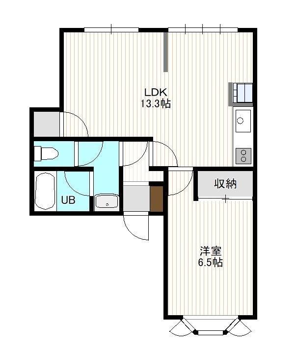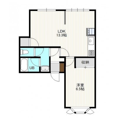 1LDK(42.8m²)└ 2階:LDK13.3帖 洋室6.5帖