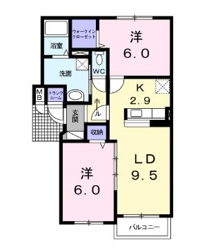 2LDK(55.84m²)└ 1階:LDK12.4帖 洋室6帖 洋室6帖