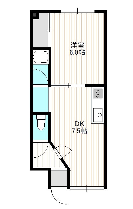 1DK(29.6m²)└ 5階:DK7.5帖 和室6帖
