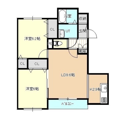 2LDK(55.29m²)└ 4階:LDK12.5帖 洋室6.2帖 洋室6帖
