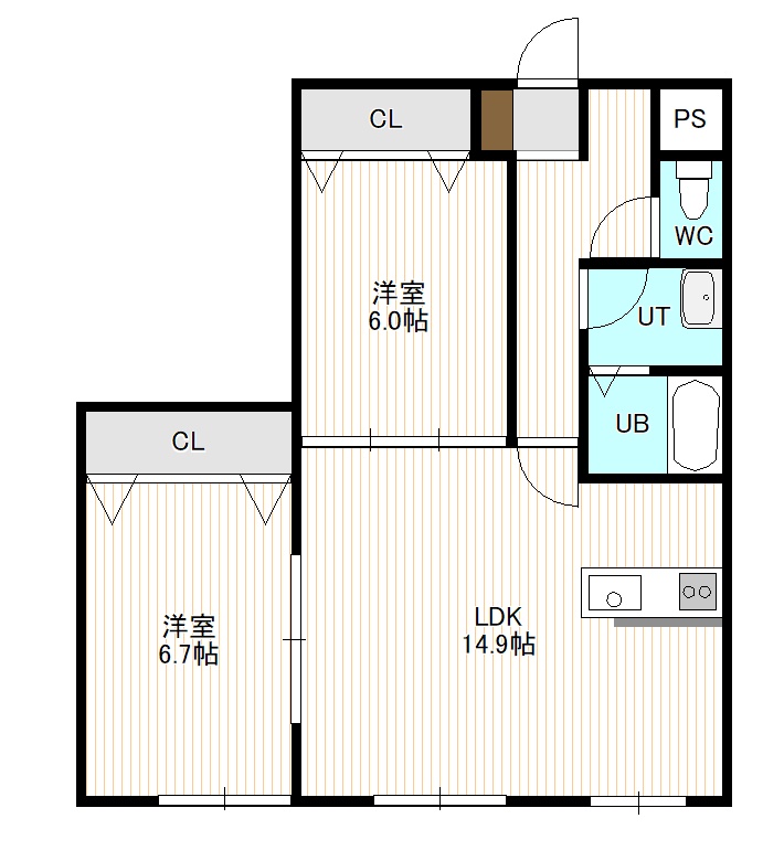 2LDK(63.03m²)└ 2階:LDK14.9帖 洋室6.7帖 洋室6帖