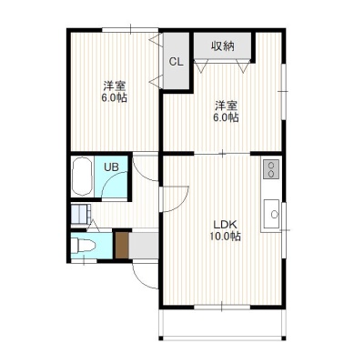 2LDK(48.34m²)└ 2階:LDK10帖 洋室6帖 洋室6帖
