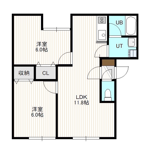 2LDK(46.65m²)└ 1階:LDK11.8帖 洋室6帖 洋室6帖