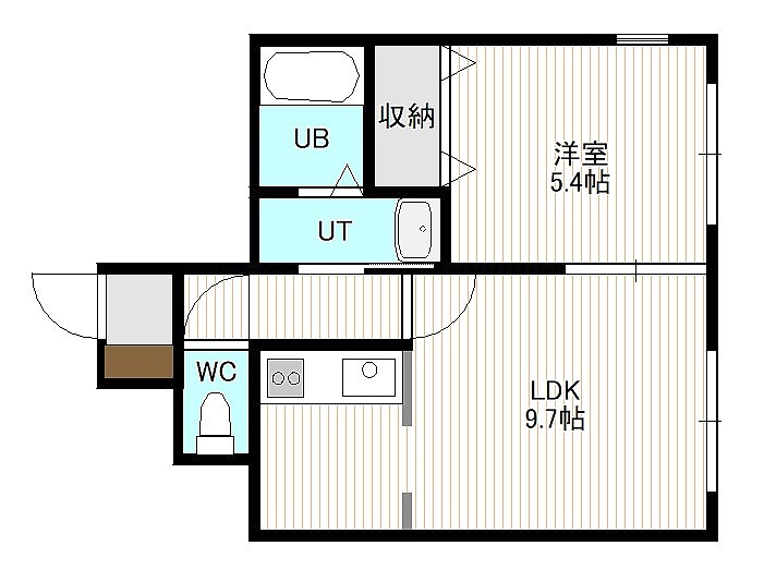 1LDK(36m²)└ 1階:LDK9.7帖 洋室5.4帖