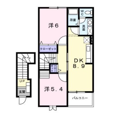2DK(51.67m²)└ 2階:DK8.9帖 洋室6帖 洋室5.4帖