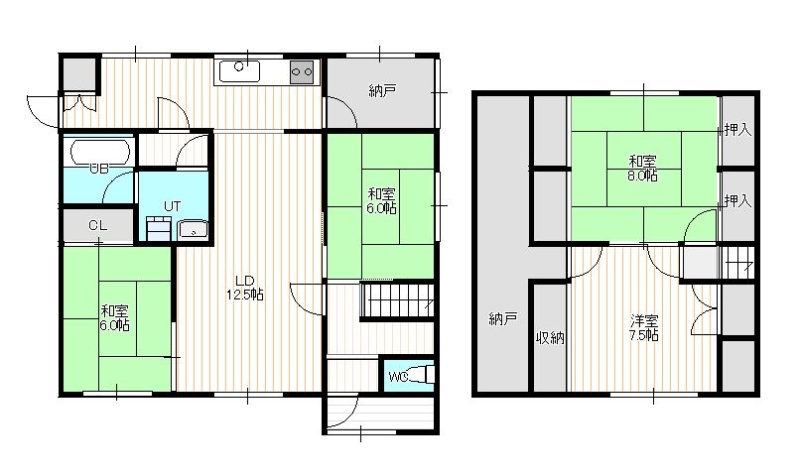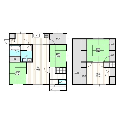 4LDK(133.72m²)└ 1階:LD12.5帖 和室6帖 和室6帖 / 2階:和室8帖 洋室7.5帖